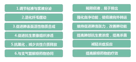 2.與抗生素聯(lián)合,幫助肺部炎癥吸收,短病程,有利于抗感染,減少抗菌藥用藥時間;