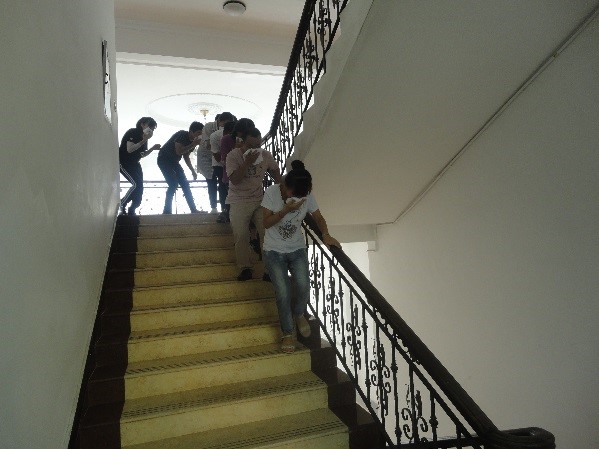 上午9點30分,演練正式開始:公司辦公樓一樓大廳意外起火,濃煙四起,消控中心發(fā)現(xiàn)火情后立刻向安全生產(chǎn)負(fù)責(zé)人匯報情況,安全生產(chǎn)負(fù)責(zé)人收到火情后第一時間啟動消防應(yīng)急預(yù)案,通知滅火行動組人員趕赴現(xiàn)場控制火情,并通知疏散引導(dǎo)組迅速組織辦公樓內(nèi)所有人員逃生。疏散引導(dǎo)組組長接到指令后,馬上通知辦公樓內(nèi)所有員工向辦公樓外撤離,安撫員工情緒,提醒大家用濕毛巾掩住口鼻,弓身沿樓梯扶手排成一列有序向外疏散逃生。